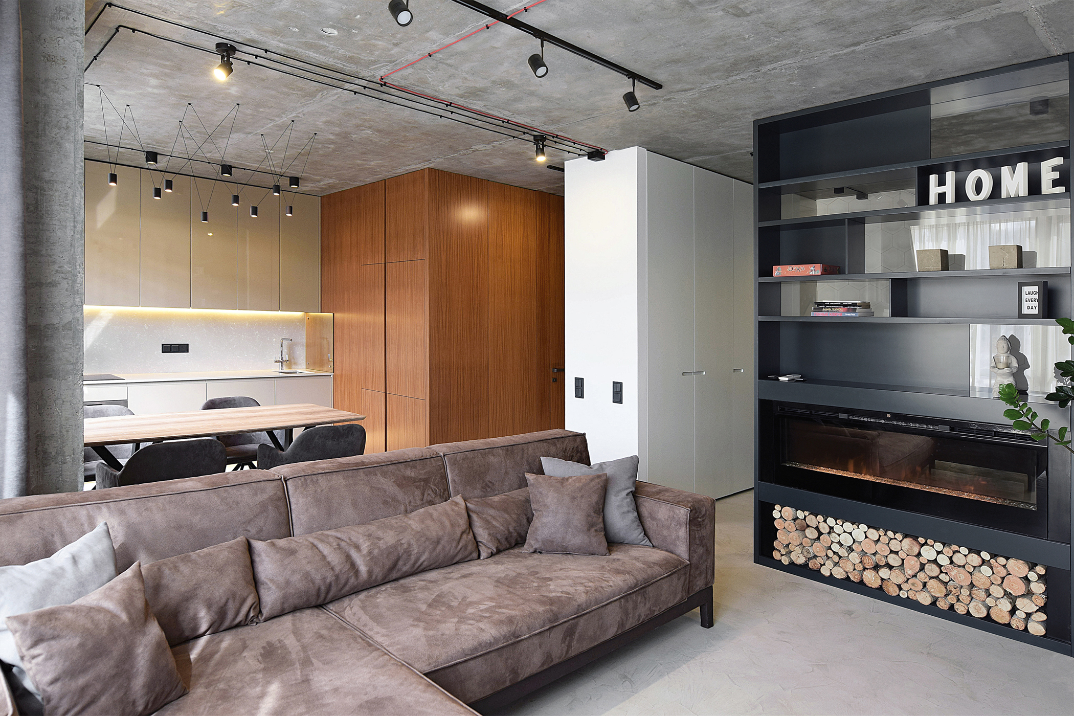 Контрастное сочетание светлых и темных тонов — характерная черта выбранного стиля, позволяющая визуально объединить пространство.