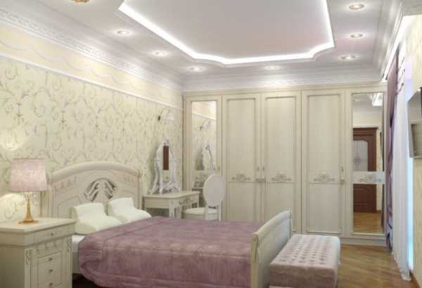 Потолок оформляют в классическом стиле и светлых тонах. Это делает помещение просторным и уютным. Хорошо подойдут небольшие лампы, рассеивающие теплые лучи света. Для такого помещения не стоит использовать подвесные конструкции, так как забирают сантиметры на потолке. В итоге он снизит свою высоту и создаст эффект тесноты.