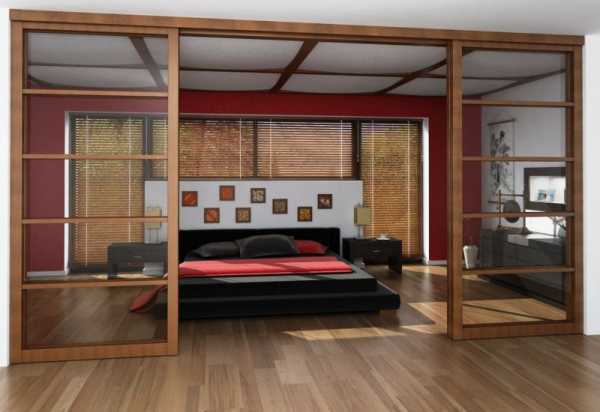 Чтобы отделить одну комнату от другой, используют стены из гипсокартона. Хорошо подойдут и перегородки, оборудованные раздвижными дверями. Таким образом, свет будет проникать в помещение, где нет окна.