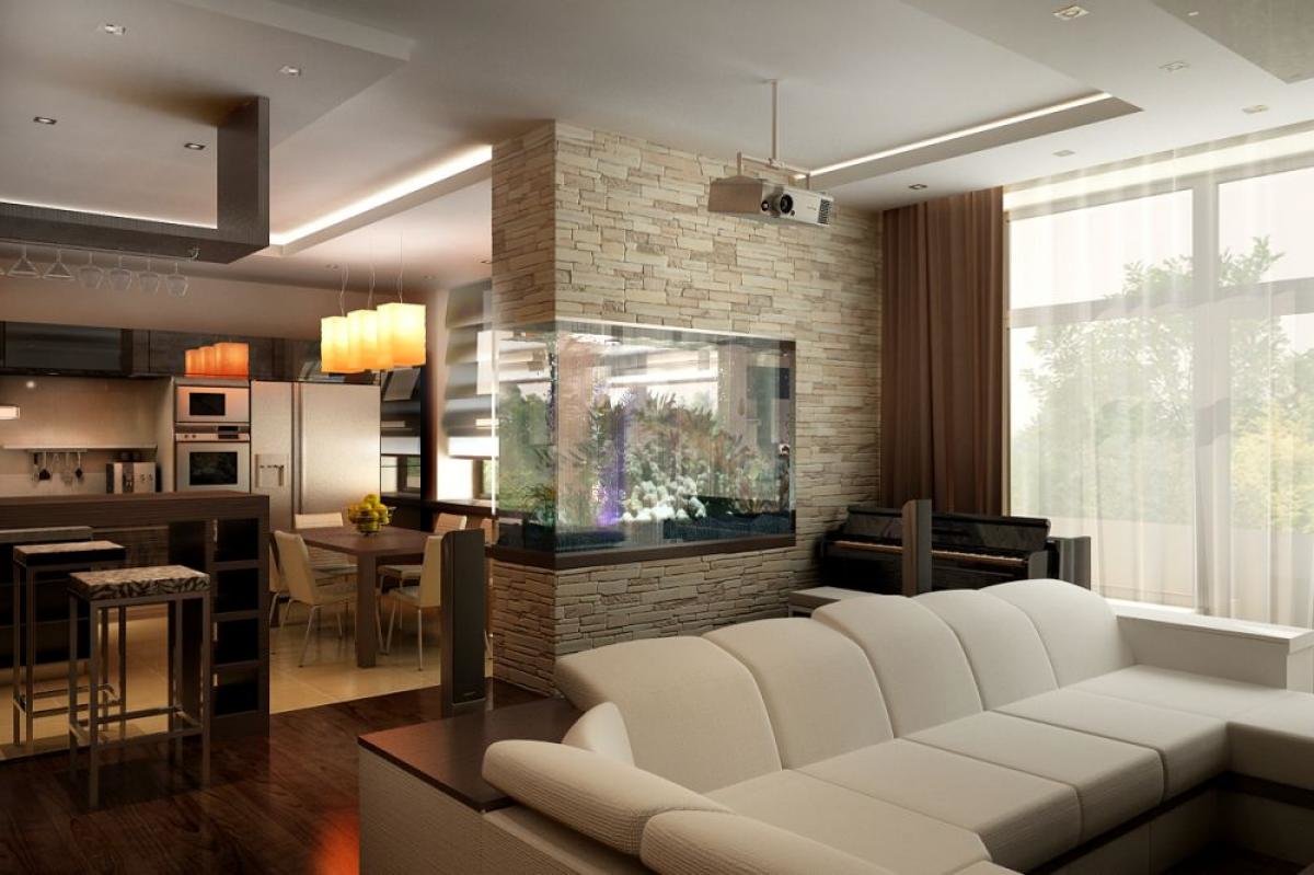 планировка кухни и гостиной в квартире 37, 45-46 и 60 кв. м, варианты интерьера