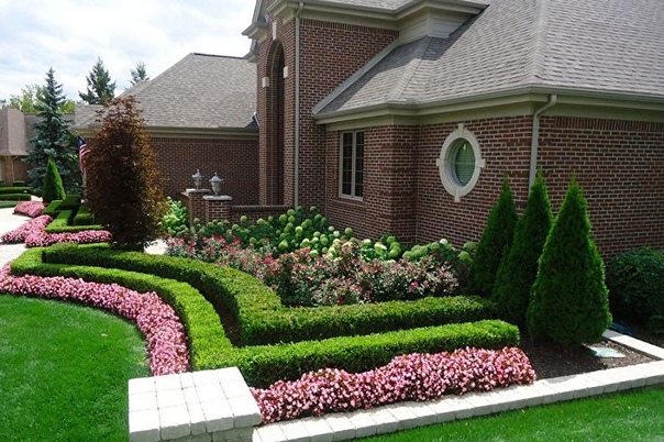В некоторых случаях высоту живой изгороди перед домом можно увеличить, а перед нею разбить цветник из низкорослых однолетников.