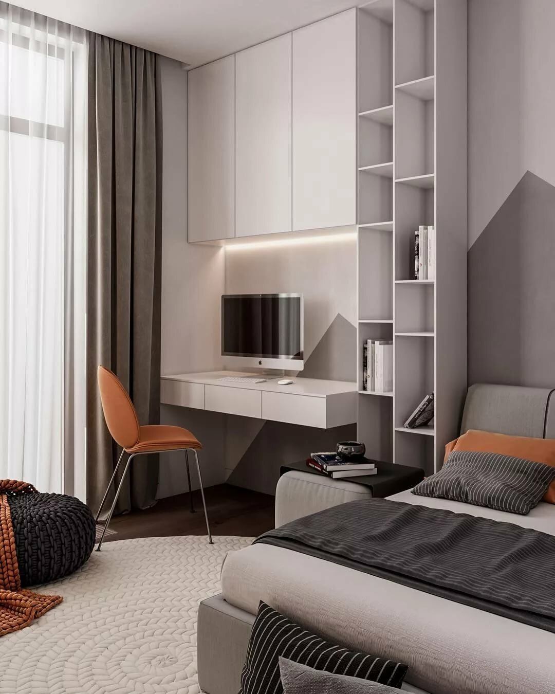 Помимо того, что в комнате мужчины должно быть комфортное спальное место, также следует позаботиться и о рабочей части комнаты.