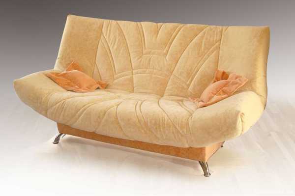 - Клик-кляк – существенное отличие в двух положениях – сидя и лежа. При поднятии на верх нижней части действует механизм, и софа раскладывается.