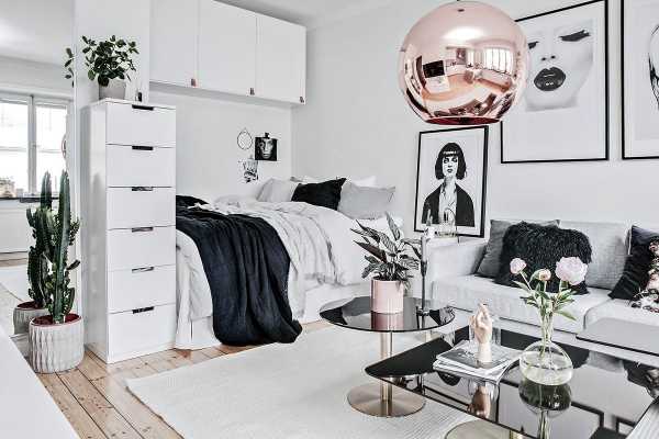 Не перегружайте интерьер, ставьте только самое необходимое: кровать или диван, стол, места для хранения различных вещей. Не захламляйте пространство.