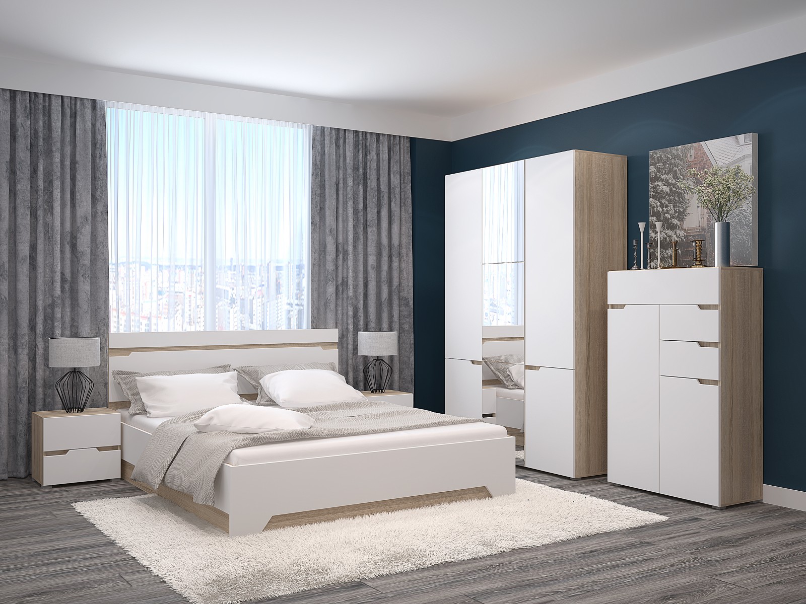 Заменой мебели из натурального дерева можно считать предметы, выполненные из ЛДСП и МДФ. В последнее время данные материалы довольно популярны и мебельные фабрики предлагают огромный выбор уже готовой меблировки для спален, выполненных из них.