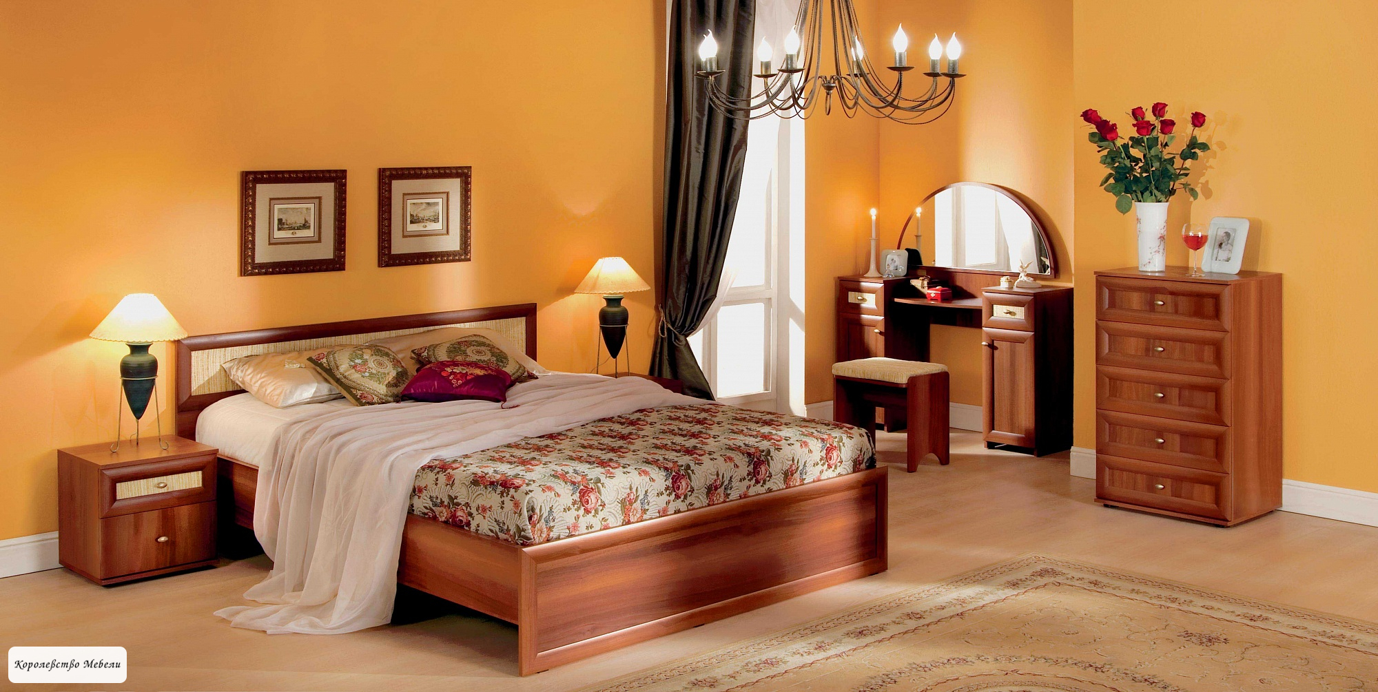 Выбор мебели для спальни, конечно, в первую очередь зависит от размеров комнаты. Российские фабрики выпускают уже готовые гарнитуры, которые превосходно подходят для обстановки в стандартных российских квартирах. Минимальный набор мебели содержит кровать и прикроватные тумбочки, в максимальной есть шкаф, комод, туалетный столик, стулья с подлокотниками и другие предметы меблировки. Дизайн таких гарнитуров можно выбрать в разных стилистических решениях. Материалы для изготовления таких наборов используется также различные.