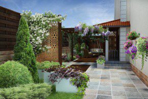 Дизайн маленького участка хорош своей компактностью, правда, на небольшом участке от бассейнов, веранд или просторных лужаек лучше отказаться. Размеры участка, если до дороги меньше пятнадцати метров, вряд ли позволят создать множество затемненных местечек для уединения в окружении деревьев и кустарников. Будет лучше сосредоточить свое внимание на цветах и кустарниках, которые, при правильном подходе к эскизам, помогут частично скрыть участок от любопытствующих глаз соседей и создадут атмосферу тепла и уюта.