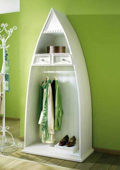 Если же, шкафу не найдется места, то можно организовать полки с вешалками и антресолями. Дизайн таких полок разнообразен, от деревянных до кованных. Необходимо предусмотреть полки не только для хранения больших вещей, но и для шляп, обуви.