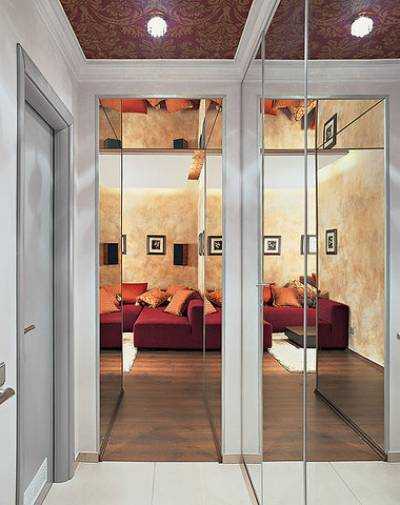 Шкаф-купе в интерьере небольшой прихожейХорошо, если мебель будет сделана из глянца или зеркальной поверхности. Таким образом, не будет чувства захламлённости и перегруженности пространства.