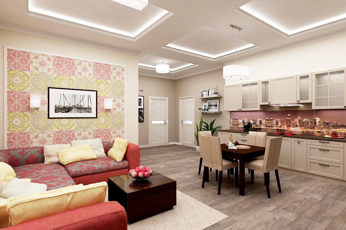 Интерьеры комнаты-студии: Гостиная-кухня-столовая и прихожая: