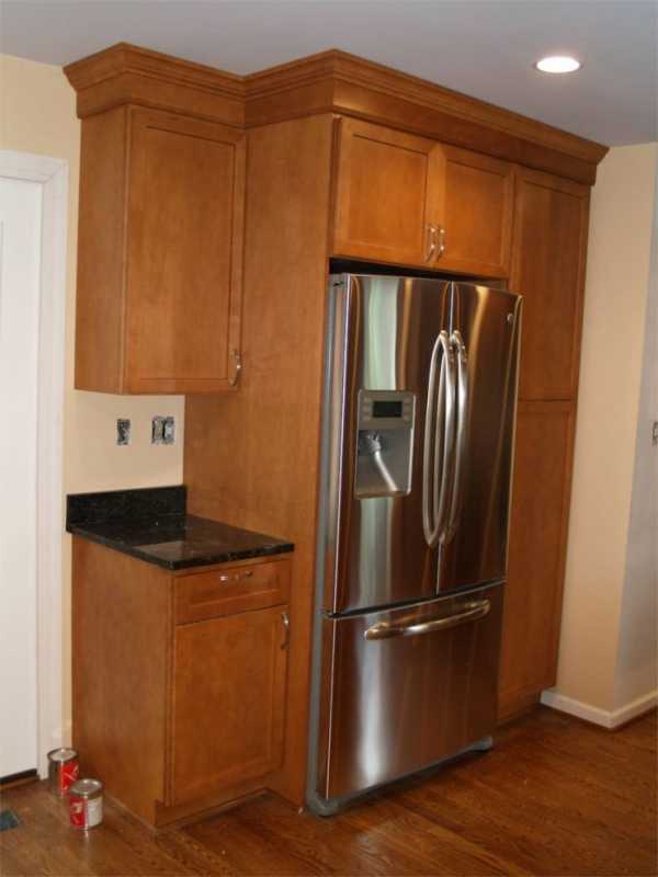 Расположение холодильника в нише — этот вариант является одним из самых практичных и удобных. В нише холодильник частично защищен от солнечных лучей, бытовых загрязнений и механических воздействий. Нужно лишь в точности соблюдались правила подключения бытового прибора, и следить, чтобы ничто не препятствовало свободному открыванию дверец.