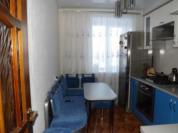 В данном случае идеально подойдет только линейный или угловой тип планировки. Чтобы немного расширить пространство, можно объединить кухню с балконом.