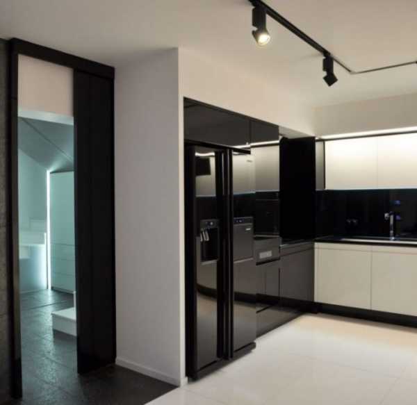 Не забывайте, что хай тек — стиль современного мегаполиса, поэтому интерьер и техника должны быть подобраны в соответствии с выбранным направлением. Для более детального ознакомления ниже подобраны фото кухни с холодильником в стиле хай тек.