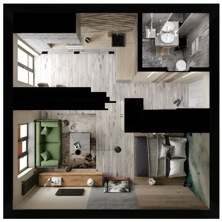 Маленькие квартиры Современный стиль Серый цветпроектов планировок в современном стиле, фото