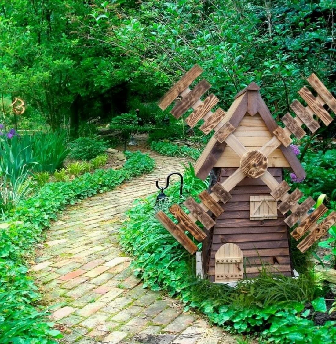 - славянский стиль — слегка безалаберный, но для окружения деревянного дома не придумано ничего лучше