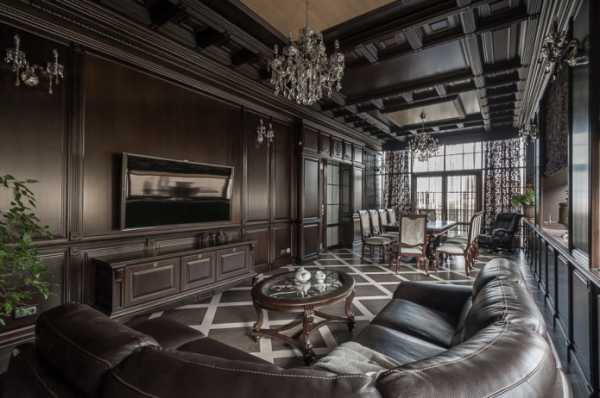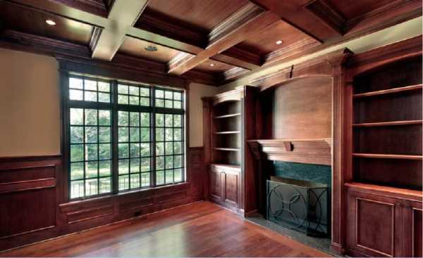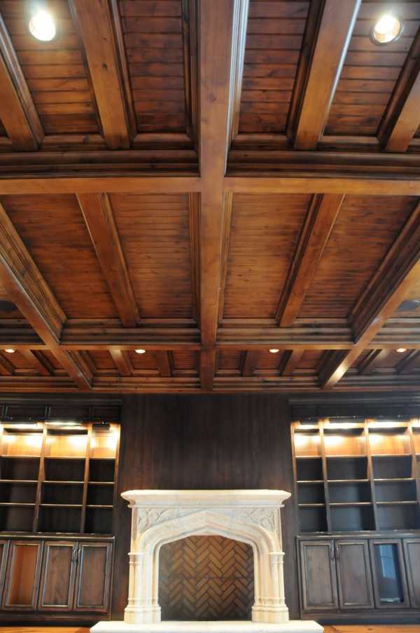 Кессонная потолочная конструкция или темные породы древесины, являются образцом отличного вкуса. Они четко выделяют каждую деталь интерьера и придают ему королевский и благородный облик.