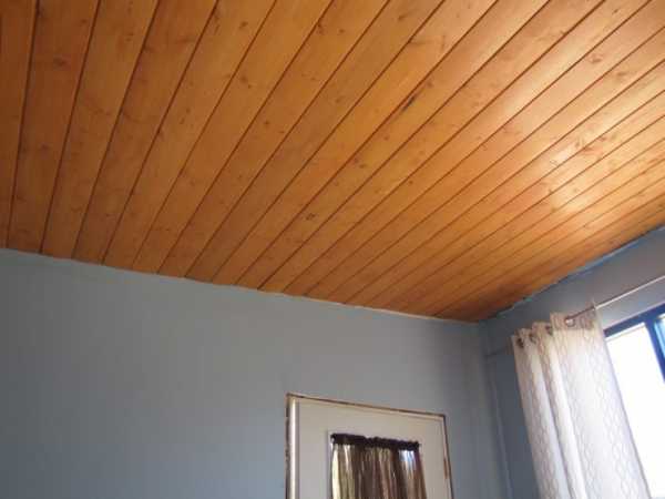 Самое главное выбрать вагонку правильной конструкции и не забыть обработать ее в конце финишным покрытием (морилка с лаком либо краска). Таким образом дерево не потеряет свой внешний вид со временем. Хорошо смотрится такой потолок, если у вас в доме дизайн кантри либо прованс.