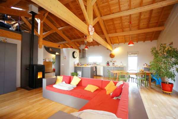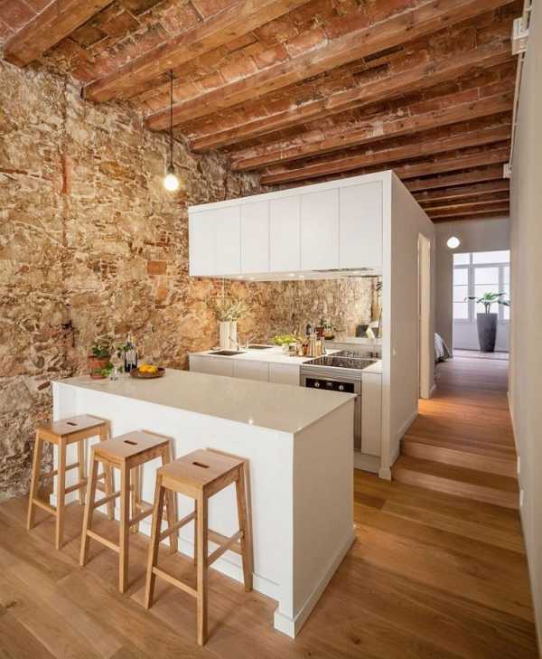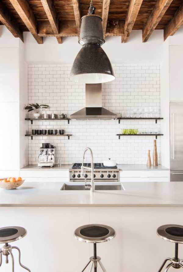 Очень впечатляет эффектный контраст с деревянным потолком окрашенных или оштукатуренных белых стен, перегородок из гипсокартона и подобных стеновых материалов