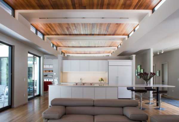 Такие потолки добавят в современный стиль еще больше простора, воздуха и света, и подчеркнут его уникальный и своеобразный характер.