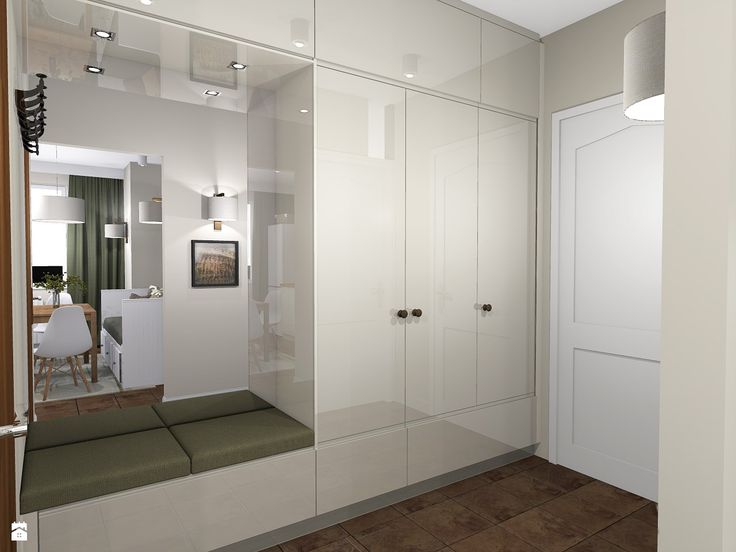 ЗеркалаЕсли не нашлось места для напольного зеркала, повесьте его на дверь у входа, сделайте зеркальным фасад шкафа-купе. Чтобы скорректировать ширину коридора, используйте мозаику из маленьких прямоугольных кусочков на стене. Расширяют пространство и глянцевые фасады, к тому же их легко мыть. Дополнительная подсветка зеркал добавит помещению уюта.