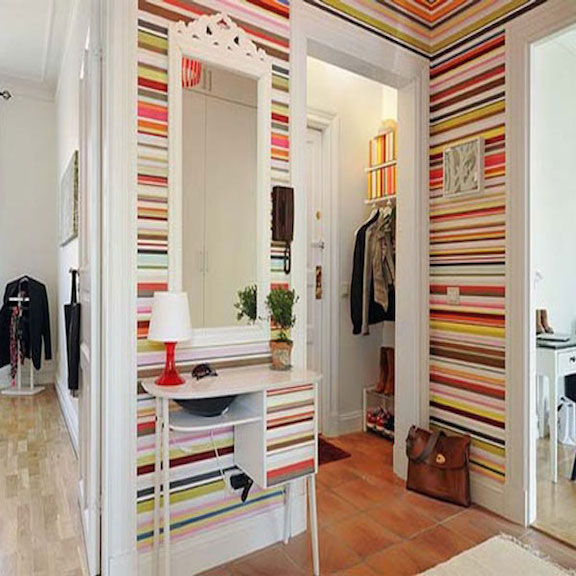 - не используйте обои с широкими линиями, их толщина не должна быть более 5 см;