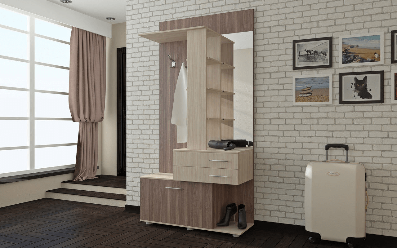 Обычный минимальный набор мебели для прихожей: шкаф, обувной шкаф, вешалка с крючками и зеркало размещаются в небольшой комнате у входной двери.Когда прихожая маленькая и нет возможности развернуть фантазию, основная задача, которую необходимо решить, — разместить на небольшой площади такой набор мебели, который украсит это пространство и как минимум расставит одежду и обувь хозяев. маленький.