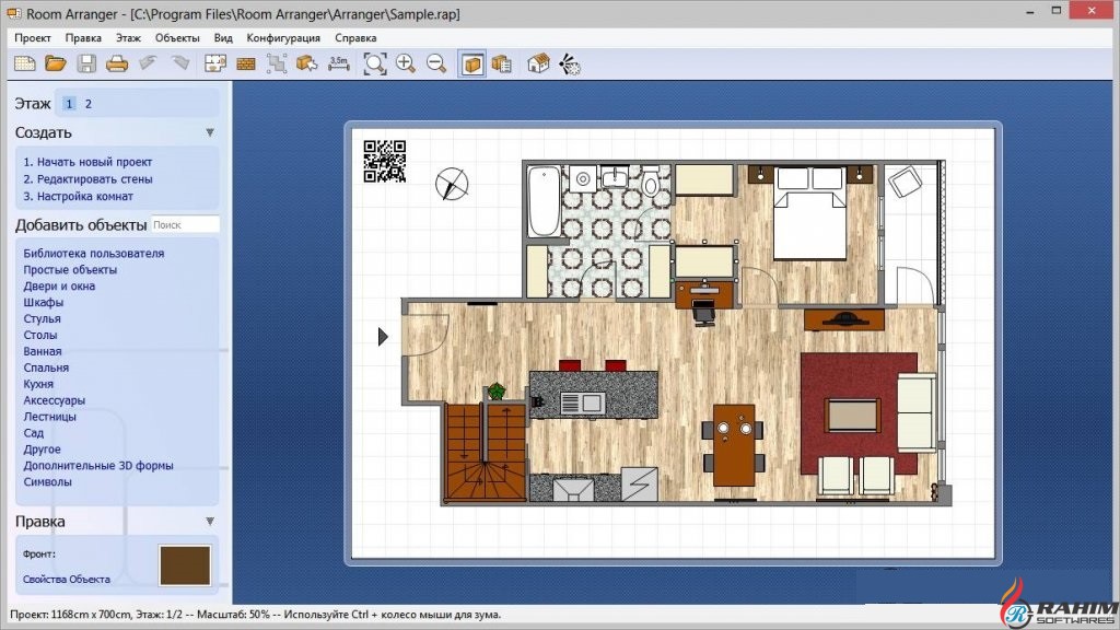 ФлорПлан 3Д – еще одна серьезная программа для проектирования домов. Как и ArchiCAD, она подходит и для планирования внутреннего убранства помещений. Вы сможете создать копию своей квартиры, а затем расставить в ней мебель. Так как программа рассчитана на решение более серьезных задач (проектирование домов), она может показаться сложной в обращении.