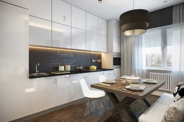 Также следует обустроить обеденную зону. Если есть балкон, вы можете совместить его с кухней, и обустроить под столовую. Но в этом случае необходимо узаконить перепланировку. Еще один вариант – барная стойка. Она подходит лучше всего, так как выполняет одновременно две функции: отделение кухонной зоны и замена столовой.