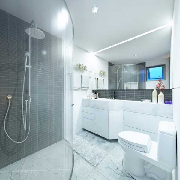 Санузел в квартире-студии, представляет собой достаточно маленькую комнату. Идеальным вариантом здесь станет установка душевой кабины, компактного унитаза и узкой раковины, вдоль стен. В случае более просторного помещение возможно размещение горизонтальной ванны.