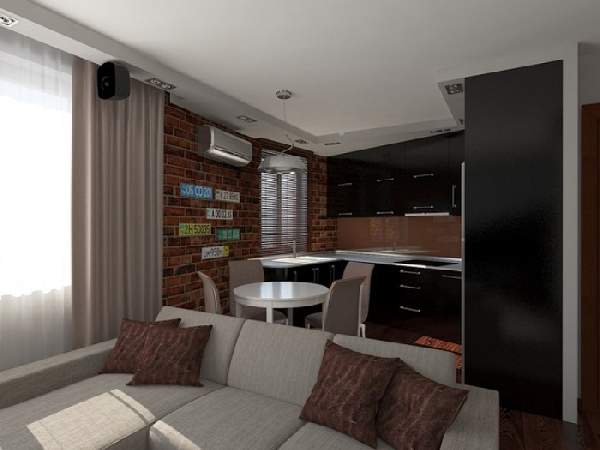 - в гостиной будет витать запах приготовленной еды. Поэтому необходимо продумать хорошую систему вентиляции и вытяжку;