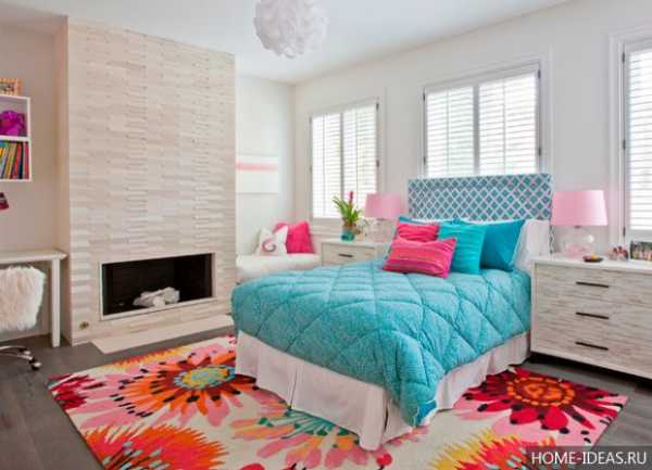 - Чтобы добавить романтичности, используются яркие декоративные элементы: подушки с цветочным или растительным узором, мягкие игрушки, контрастные коврики, шкатулки и сувениры.