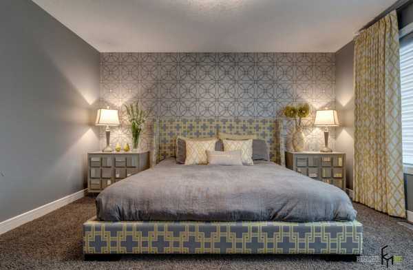 Дизайн спальни, выдержанный в желтых тонах.Планируя дизайн в спальных комнатах, специалисты крайне редко используют яркие кричащие тона и крупный орнамент в отделке.
