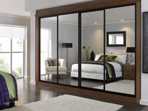 - Для хранения вещей подойдет встроенный шкаф-купе с зеркалами, расширяющими зрительно комнату.