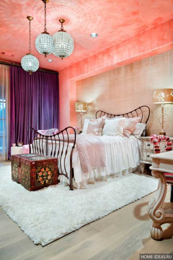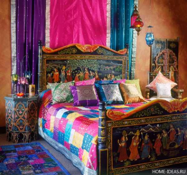 Восточный стиль — используются различные национальные культуры стран Востока (Китай, Япония, Марокко, Индия и др.). Спальня в восточном стиле, представленная на фото в интернете, может оформляться как с использованием национальных элементов одной страны, так и общевосточных принципов. Допускается использовать восточные ковры, бахрому, оригинальные орнаменты, множество разноцветных подушек, различные национальные элементы в декоре (вазы, статуэтки, светильники).