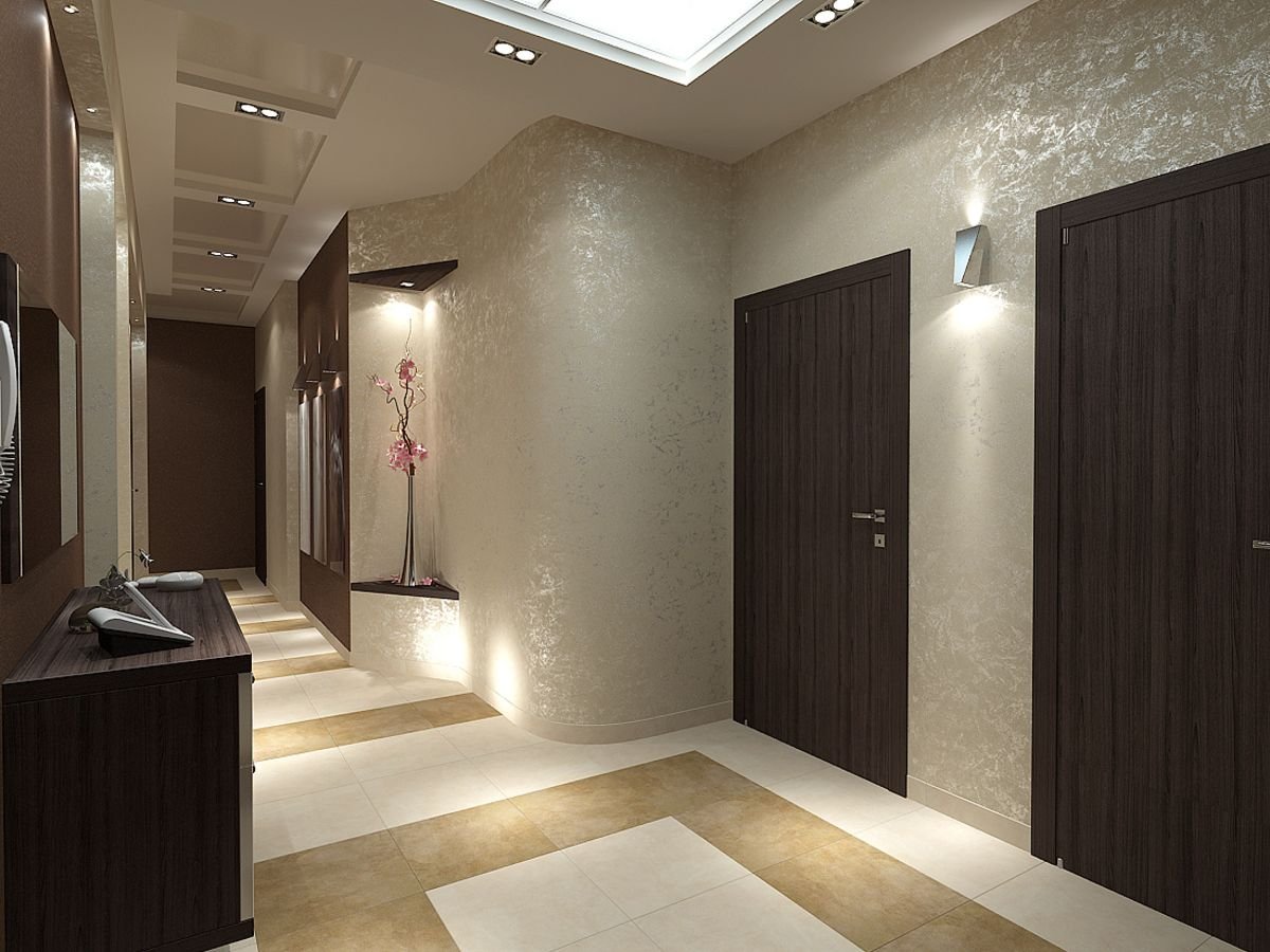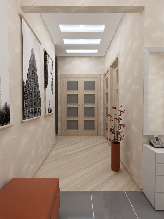 Дизайн интерьера может зависеть от формы помещения. Как правило, коридоры бывают длинными и узкими либо квадратными.