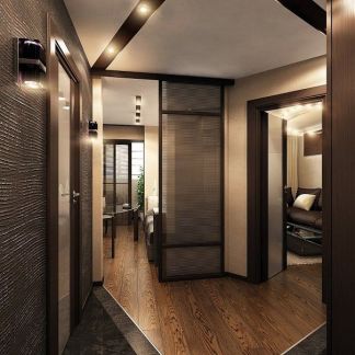 - Если коридор имеет квадратную форму и малые размеры есть смысл соединить его с гостиной и зонировать. В ином случае помещение таких размеров зонировать не получится в связи с очень малой площадью.