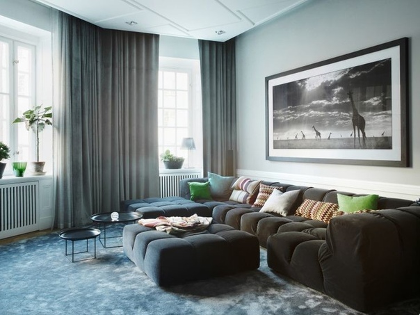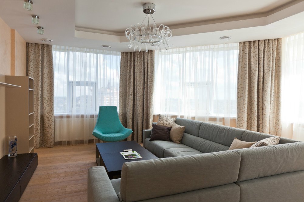 Важно определиться с тем, в какой мебели нуждается владелец комнаты. Например, если угловая гостиная с двумя окнами, то стоит рассмотреть вариант покупки углового дивана.