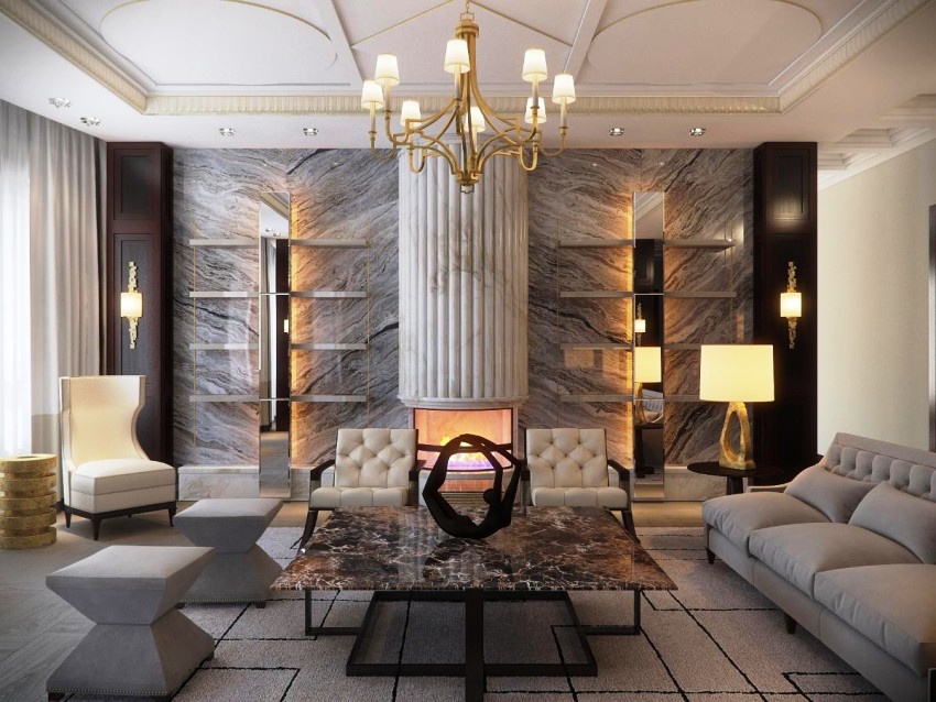 Роскошь заключается не только в том, насколько эстетично выглядит помещение, но и в комфорте. Создайте уютную мебельную композицию. Все чувствуют себя уютно, сидя на роскошных диванах и удобных стульях, расставленных таким образом, чтобы способствовать общению.