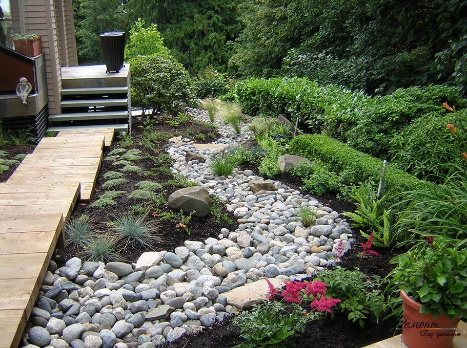 Участки в нашей стране не требуют выравнивая, создания искусственных гор или террас. Все это выглядит ненатурально. Также не следует подсыпать более «плодородный» грунт. Так можно только навредить растениям. Лучше оставить все как есть и посадить, традиционные для нашей местности, культуры.