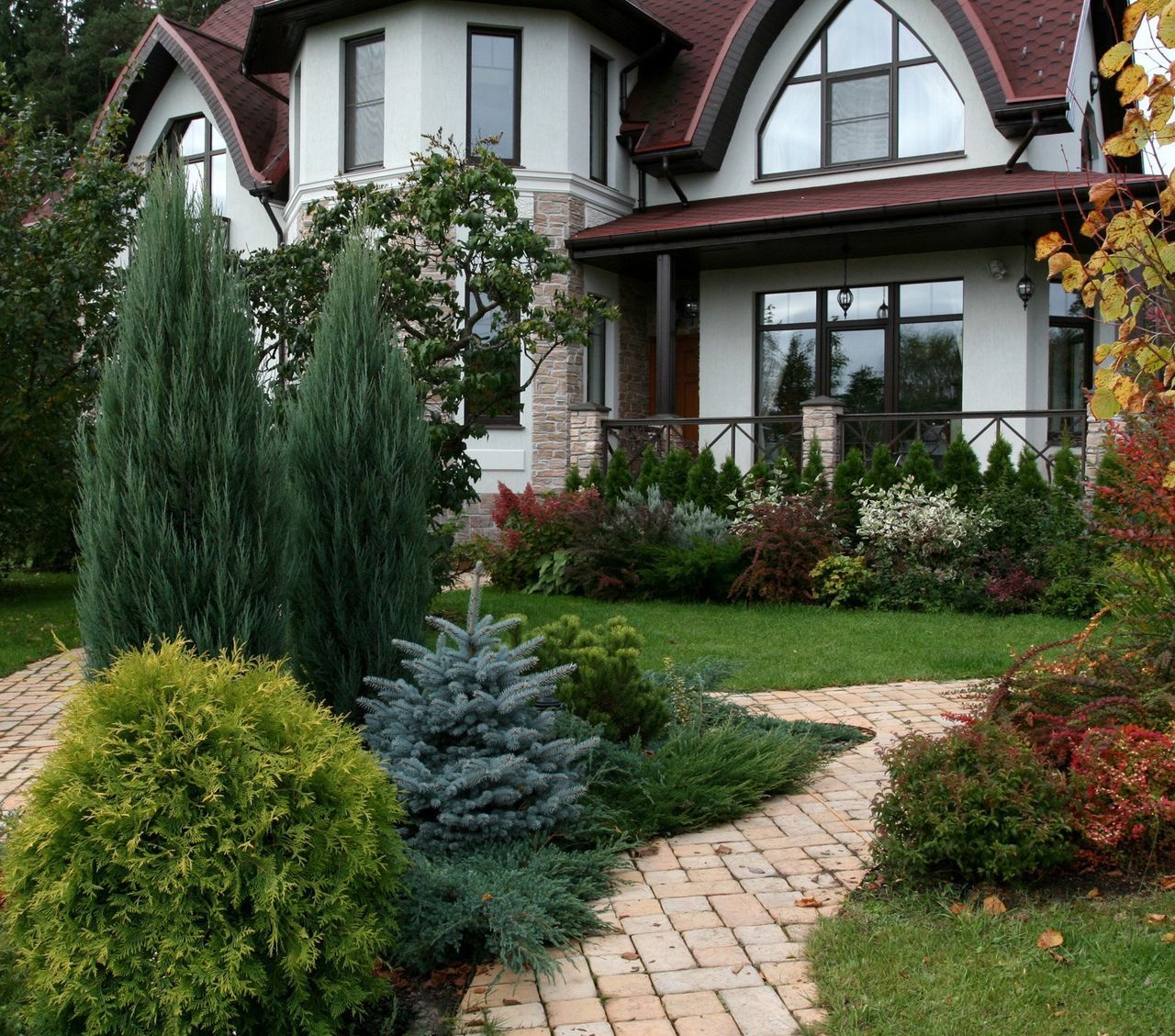 Дизайн сада в частном доме фото: ландшафтный дизайн садового участка с цветами и кустарниками