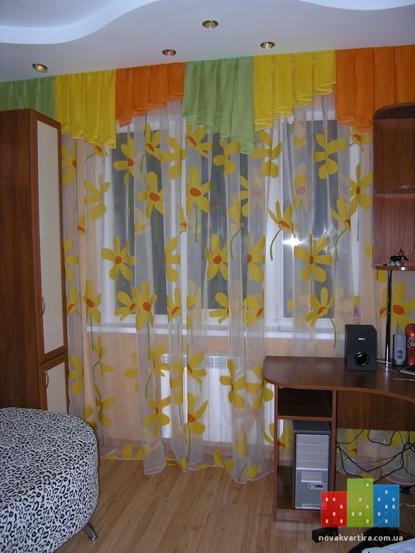 Отдельное внимание нужно уделять шторам для общей комнаты. Они, с одной стороны, не должны иметь слишком яркое цветовое решение, а с другой – должны пробуждать у детей интерес и положительные эмоции.