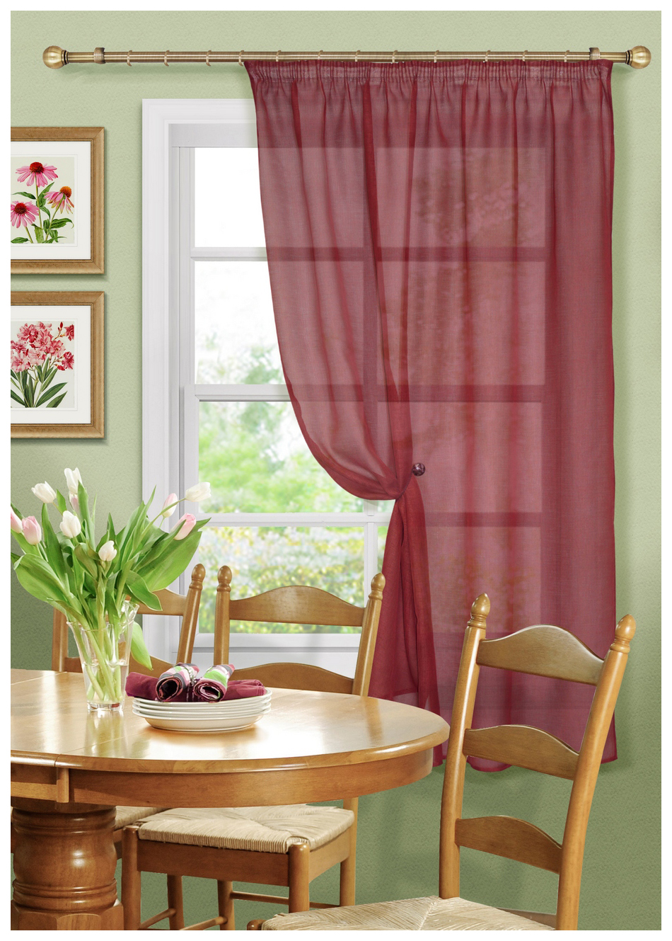 Допускается использование ламбрекенов и других элементов. Подобные шторы лучше всего будут смотреться на просторной кухне. Для небольшого помещения они не подходят.