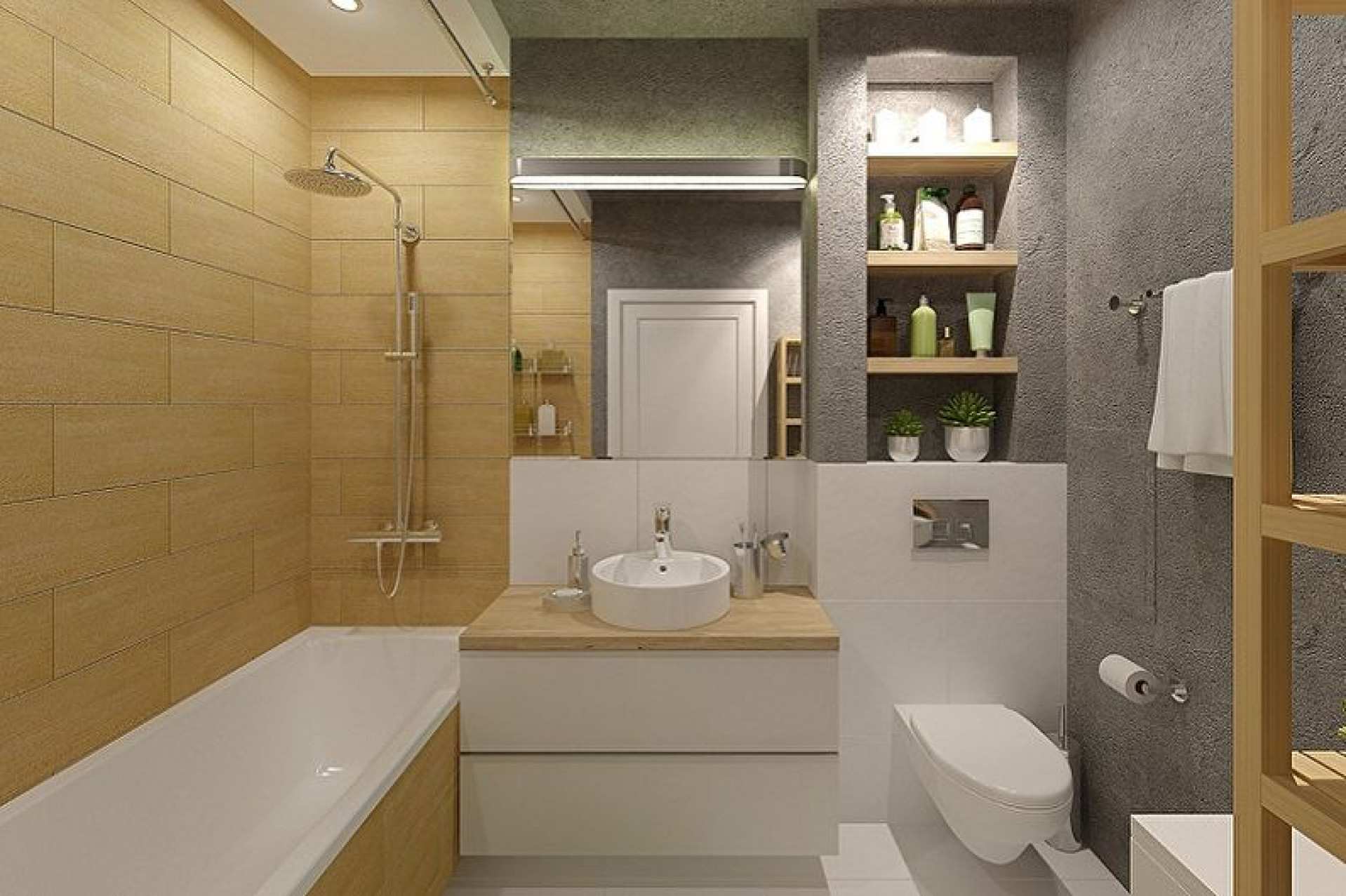 Также отталкиваться стоит от габаритов помещения, так как многие стили не подойдут маленьким санузлам. Оформление основывается на принципе зонирования трех участков: отхожая, умывальная, купальная (соответственно, унитаз, раковина и ванна или душ). Располагаются все элементы в зависимости от частоты использования.