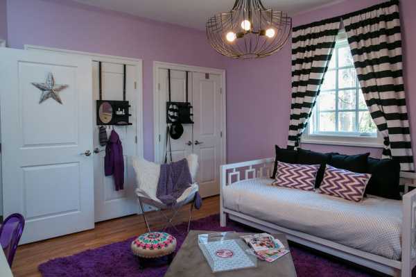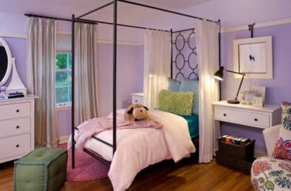 Источник: //www.cagedesigngroup.com Выбор цветового оформления является одним из самых важным, именно от палитры оттенок будет во многом зависеть комфорт и уют для помещения. Но при выборе цвета надо руководствоваться предпочтениями самой девочки и психологическое значение оттенка. Например, фиолетовый является красивым и элегантным, но его насыщенные тона для спальни не подходит. Отличным вариантом станет использование лавандового или пастельного сиреневого оттенков, которые прекрасно гармонируют с жемчужно-розовым, серебристо-серым, темными тонами коричневого.
