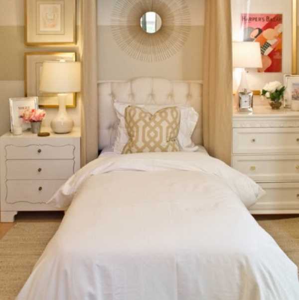 Бежевые цвета в спальне.Не выбирайте один цвет для отделки стен – сочетая цвета, можно зрительно поднять потолки, расширить стены. Например, белый, светло-серый, теплые бежевые тона обладают таким свойством – увеличивать пространство.