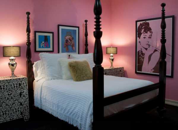 Чтобы придать обстановке больше очарования, можно использовать мягкий розовый, ментоловый оттенки, лавандовые и сиреневые тона. Для рисунков на стенах используются утонченные флористические орнаменты в более темных тонах, серебристого или золотистого цвета. Но рекомендуется избегать очень темных, агрессивных тонов, например, излишне яркого розового, большого количества позолоты, алого или ярко-красного. Они не только перегрузят обстановку, но и сделать ее крайне непривлекательной, непригодной для сна.