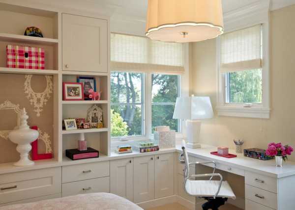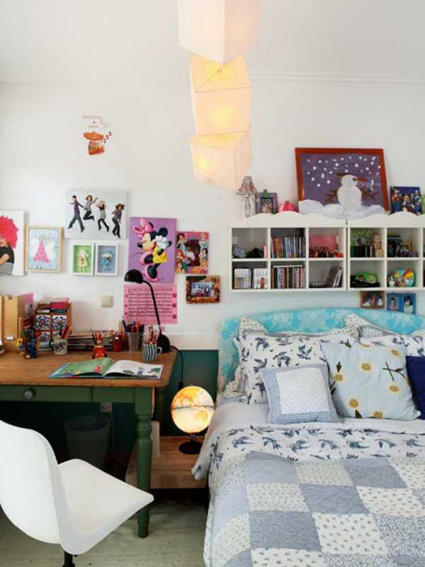 Чаще всего спальня девочки совмещена с ее рабочим кабинетом, поэтому нужно предусмотреть и зону со столом и книжным шкафом.