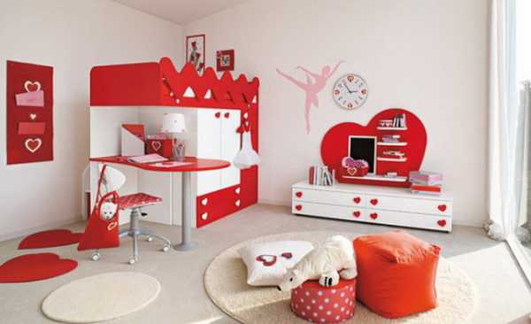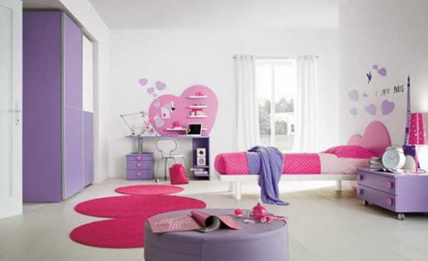 Безусловно, спальня девочки должна отличаться от мальчишеской. Девочки любят целостные интерьеры, яркие цвета, интересные композиции, милые предметы и аксессуары. Поэтому здесь просто обязательно должны присутствовать традиционные украшения – банты, сердечки, мягкие игрушки, рюши, звезды, луна, солнце, цветочки и т.д.