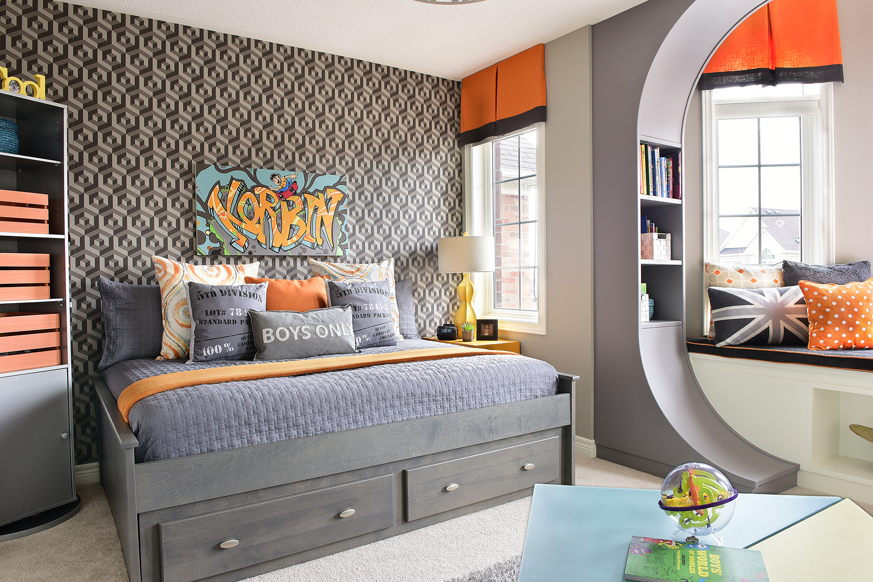3. Дополнительная выдвижная кровать, сиденье у окна и письменный стол делают это место идеальным местом для подростка, который любит ночевать с друзьями, но также нуждается в собственном месте, чтобы расслабиться и подзарядиться.