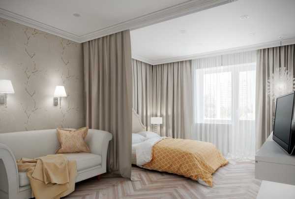 Идеи зонирования гостиной спальни — шторки